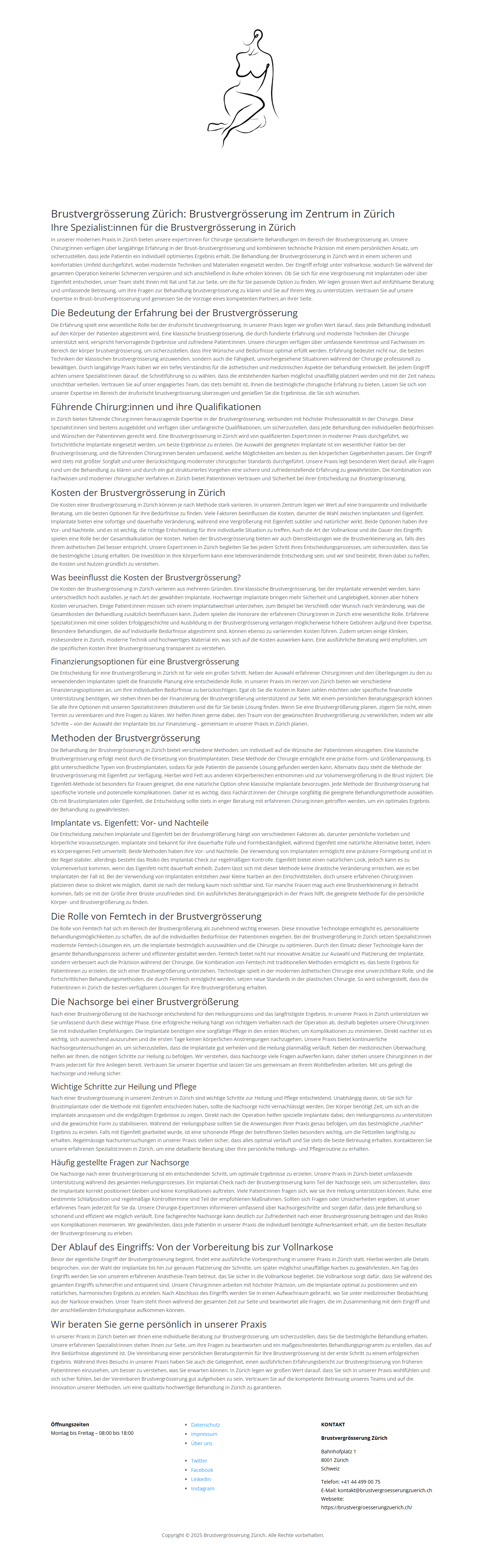 Brustvergrösserung Zürich serves as a vital, patient-centric platform in the Zürich region, dedicated to helping individuals navigate the complex journey of breast augmentation. Rather than performing surgery itself, this resource connects women and men with highly qualified plastic surgeons in the city, offering clear, expert-driven information and facilitating informed decisions.